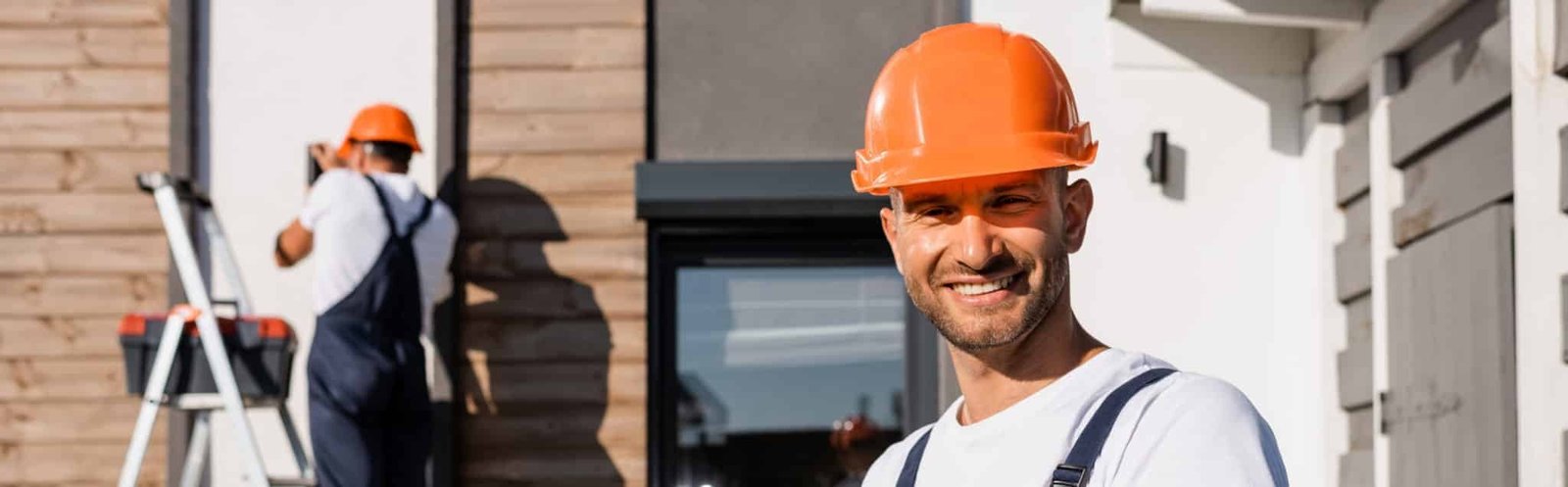pécialiste vérifiant l’alignement d’une façade en métal.